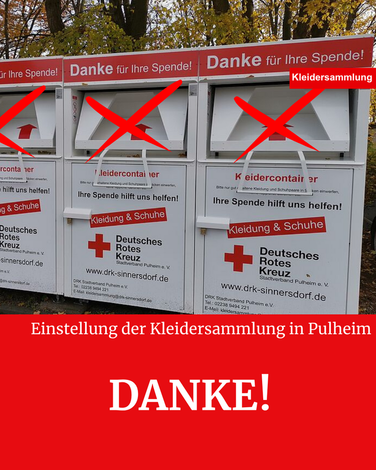 leider müssen wir Ihnen mitteilen, dass wir unsere Altkleidercontainer im Stadtgebiet Pulheim einziehen müssen.